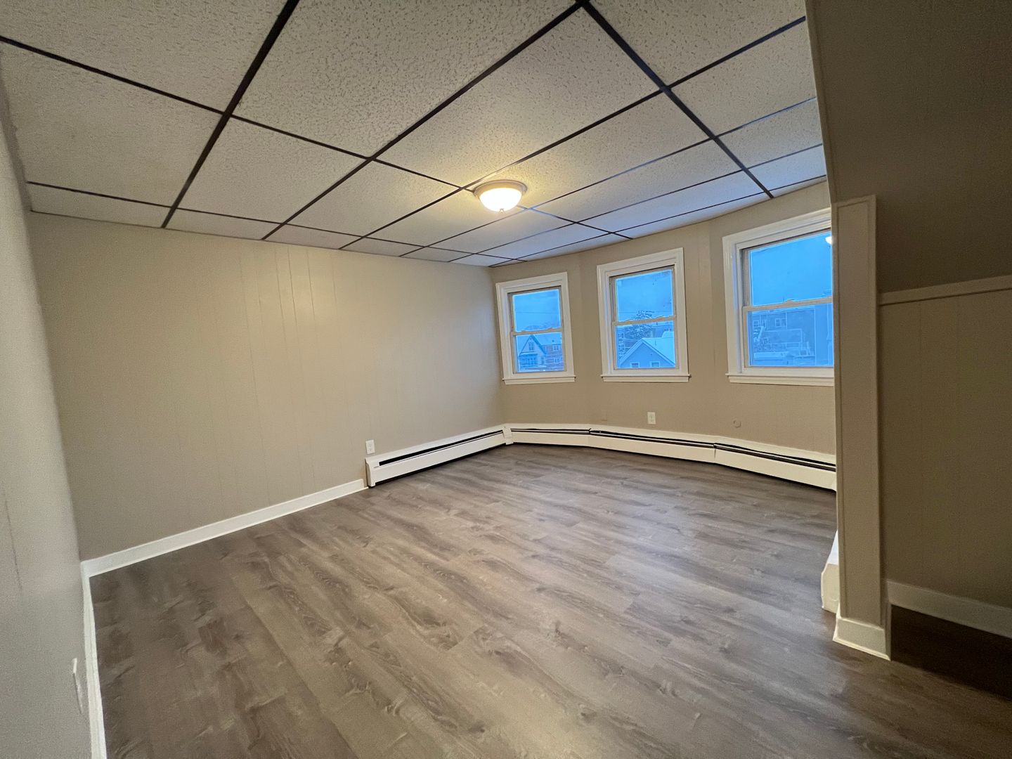 3 Bedroom, freshly painted and all new flooring throughout. Third floor apartment. Off street parking. Washer/dryer connections in unit.