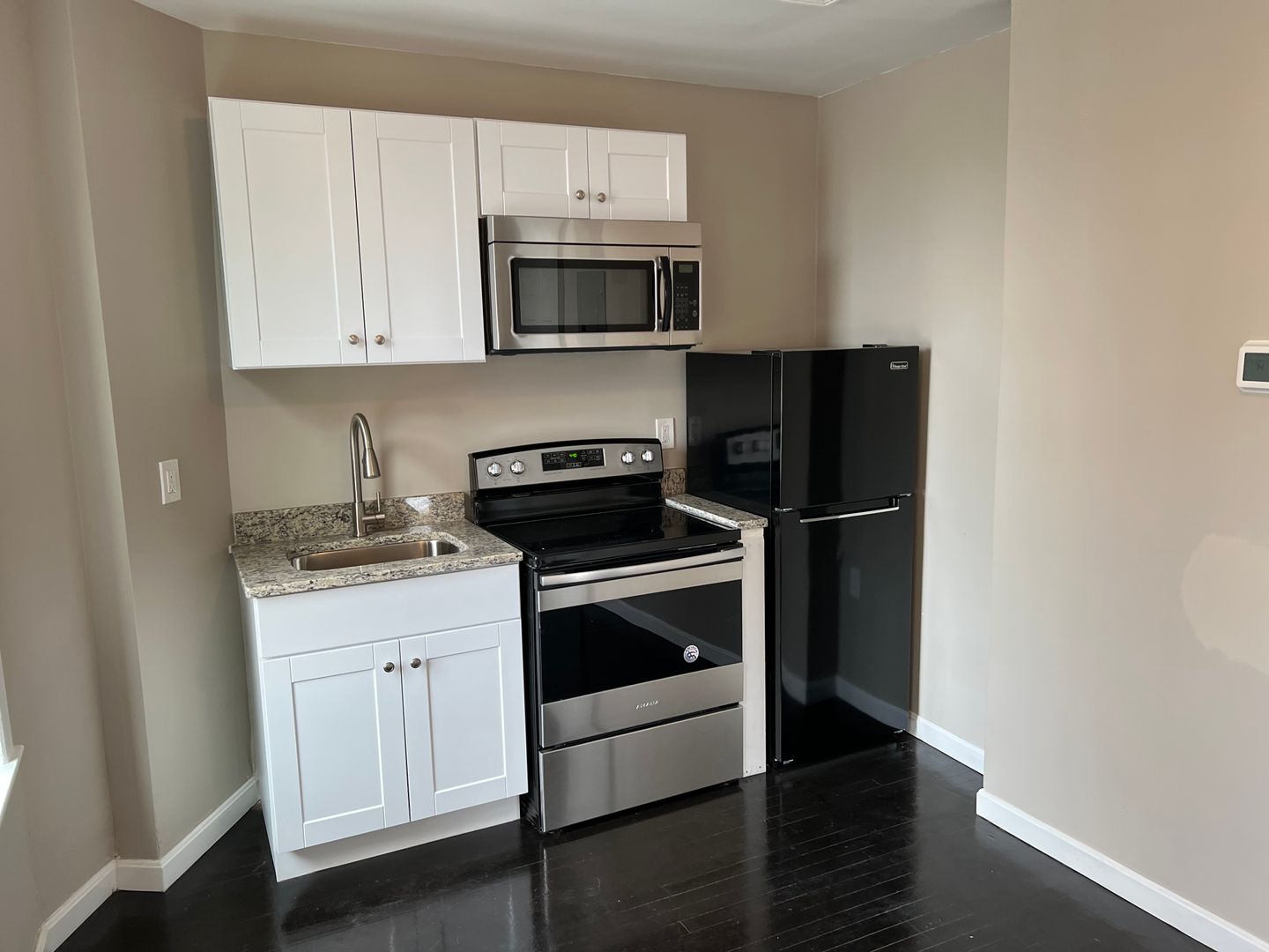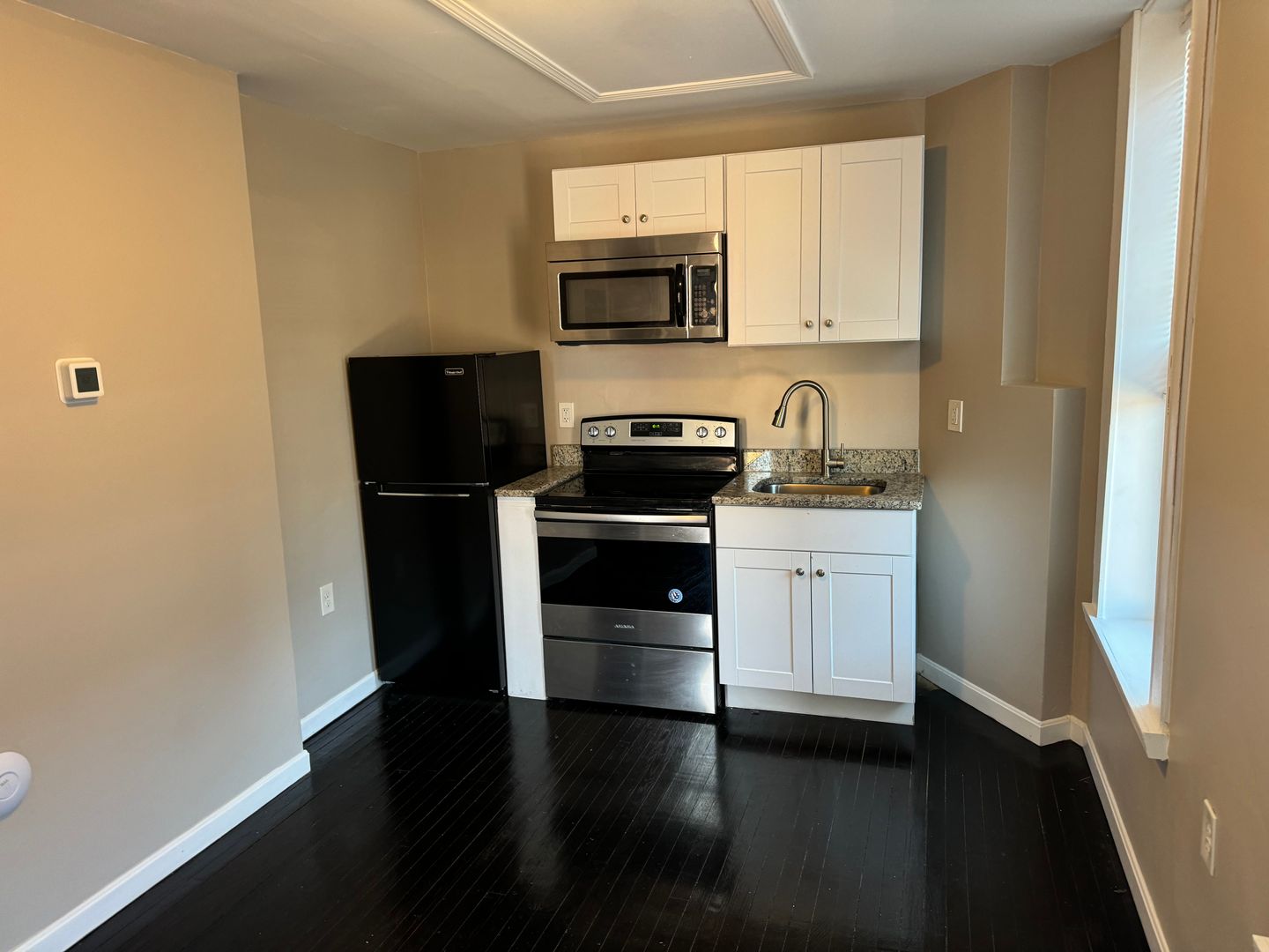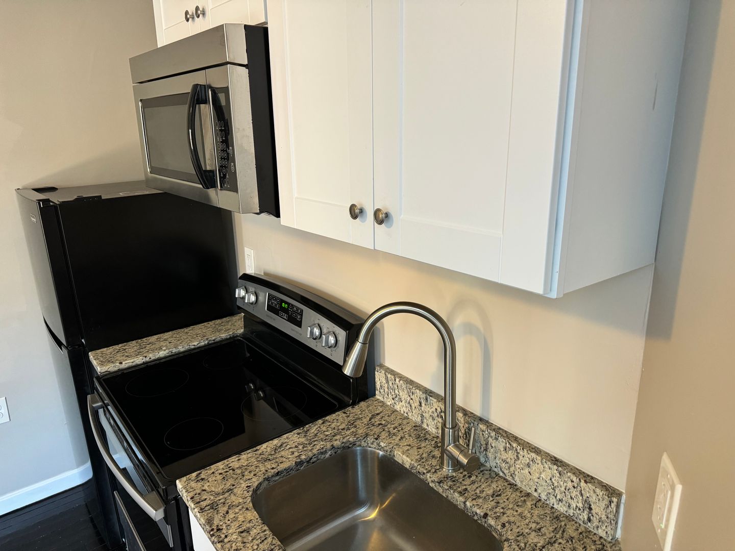 PRICE DROPPED TO $1,100.00! Are you looking for a modern SMALL and cozy place, and don't need a lot space? This tiny studio, central air-conditioned with large ceramic tile bathroom is for you! Granite countertops, stainless steel appliances, hardwood floors, video intercom, on-site laundry facilities.